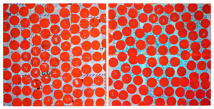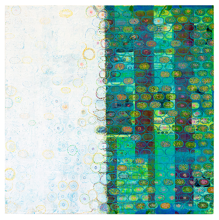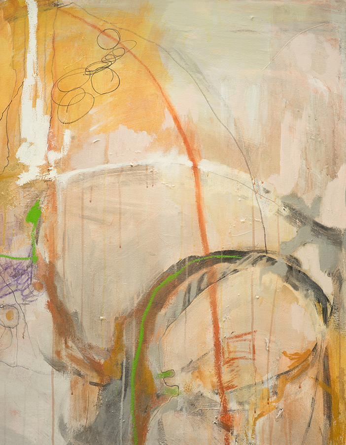"Engaged in the complexity of art and life, I make paintings and works on paper. They are composed and informed by the influence of the contemporary language of abstraction as well as in a lived life. Layered combinations of markings - dots, dashes, lines, slashes, circles, ovals and loops – contribute to the overall spatial patterns and color shifts. I tune into them as I work in my studio. Sometimes, and in different ways, I include bits and pieces of collage materials.
