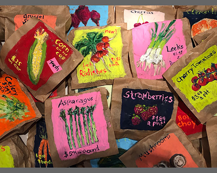 It is now 2020 and the world is in the grips of a brutal pandemic. Living in New York City and homebound, I began exploring the painting of still lifes. This has evolved into my “farmer’s market” series featuring fruits and vegetables, painted in gouache on recycled brown paper bags."