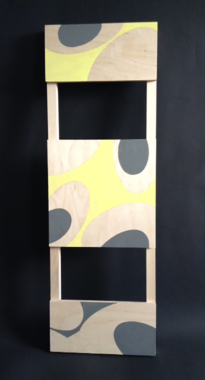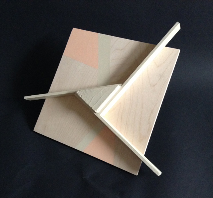 “I work in a variety of materials, and currently I am constructing sculptures of wood (with color). It’s a return of sorts, having made some of my earliest pieces in this material. As I build these objects I use the addition of color as a layer and a dimensional marker. Architecture is a reference in my work: dwellings with their roofs, doorways and windows are an inspiration. The foremost idea is that a structure must be viewed from different vantage points to see its angles and details.”