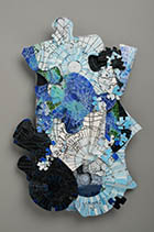 With Turbulent (e)motion I explore the effect of anthropogenic climate change on rising seas & melting glaciers. These pieces, with a palette of blues, greys white and black, show fragments of volatile oceans. I create 3-dimensional reliefs to invite us to imagine ourselves within the seascape above and below the surface of the water.