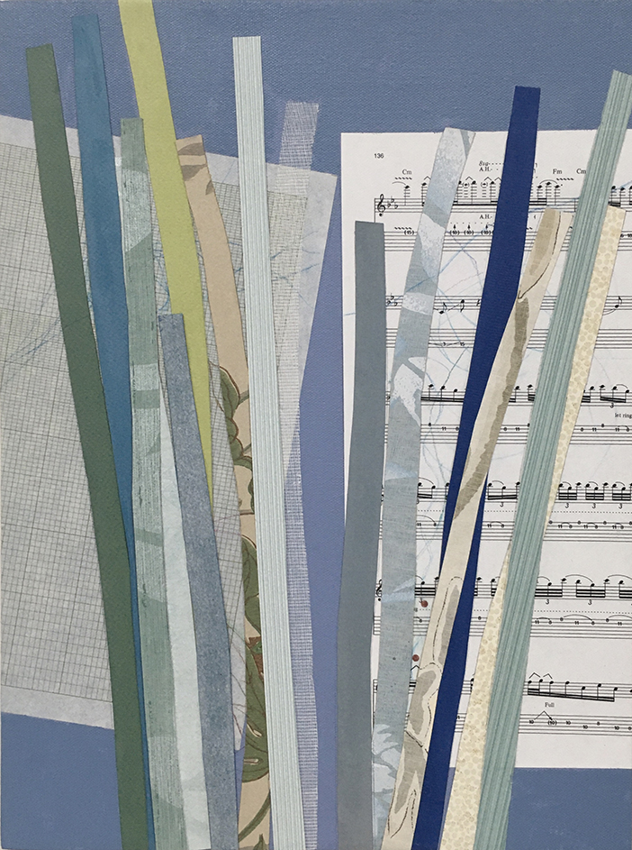 “Gathering lots of new materials a few years ago—all sorts of papers, wallpaper, old, new, patterned, textured—I set out to find a way to combine and pull together disparate and at times clashing elements into harmonious resolution. I sought out affinities, reverberations and resonance between seemingly incompatible elements and brought more life and nature into my work. Slowly, the pencil drawing I'd taken up again in 2010 after a long hiatus became incorporated into the work along with the glued paper and paint on canvas or old book covers.