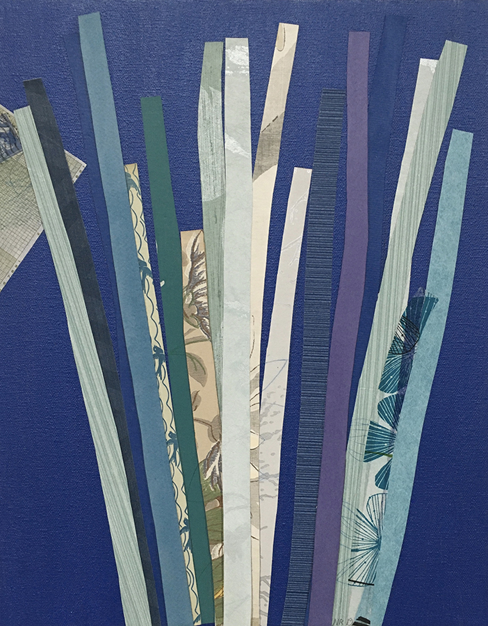 Nancy Rubens has lived and worked in New York City and Wellfleet for decades, focusing on abstract collages on panels and on the insides of vintage book covers, and multimedia works on canvas.