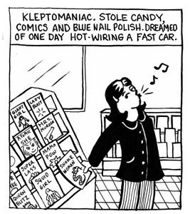 Jennifer Camper’s comics explore gender, race and class from an outsider’s (female, queer, and mongrel) perspective. The work also celebrates sexy women and ridicules stupidity. Camper became a cartoonist because she likes making art with both words and pictures. Also, all the tools of the trade are small and easy to shoplift.