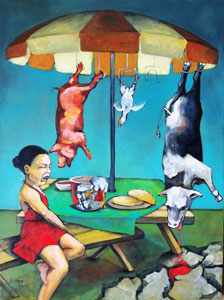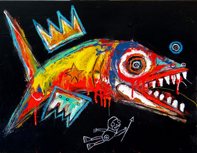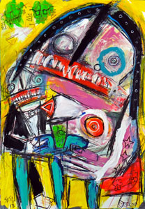 Matt Sesow is an independent self employed artist living and working in Washington, DC. Sesow’s “self-taught” style of painting has been described in the press as Art Brut, Outsider, Folk Art, and Abstract Expressionist. He enjoys portraying subject matter as diverse as cuddly animals with razor sharp teeth to bumbling politicians and a slew of life’s little tragedies. His use of bold colors, sharp lines, and aggressive techniques in painting have created a following in a variety regions of America, Spain, and France. Website.