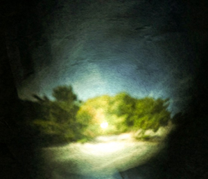 I like to inhabit the cameras I create—whether they are rooms, or tents, or the back of a jeep. Inside the darkened space, time and light penetrate the stillness through a tiny hole or a slit. The outside world is projected upside down and backwards. I hold my breath and sigh at the beauty of this world as it comes into my camera obscura like magic. I am a witness, and this is what I see.