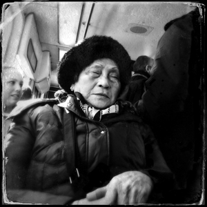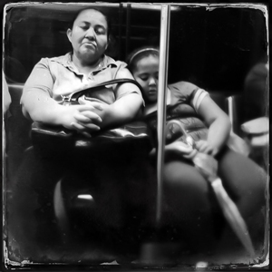 The great photographer, Walker Evans, shot photographs of people on the New York City subway system between 1938 and 1941 using a camera painted black and hidden in his coat. Thanks to the iPhone, I am attempting to follow in Evans footsteps by photographing people on the Massachusetts Bay Transportation Authority (MBTA) buses and subway trains since 2013.