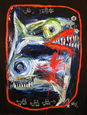 Matt Sesow, without formal art education, discovered painting as a hobby while working at IBM. In the evenings and on weekends he played with painting and began selling his work to Self-Taught and Outsider art collectors in 1995. Throughout the 1990’s he continued to paint and participate in art exhibitions while working full-time at a variety of computer firms including AOL and Netscape. Returning from a stint with the Peace Corps in 1999, Matt began to focus on his love of painting and developing a path to create art full-time.