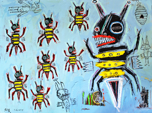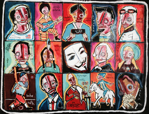 In 1997 Tashjian had a show in Positano, Italy. Having never been to Italy, but “loving the whole beautiful tile thing that they've got going on over there,” he was inspired to create a wall of 20 black and white paintings. Whether seen individually or as a whole, perceived as a wall of ceramic tile or not, the paintings coalesce beautifully in a kind of democratic design – the result of which is quite striking.