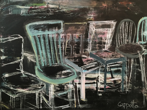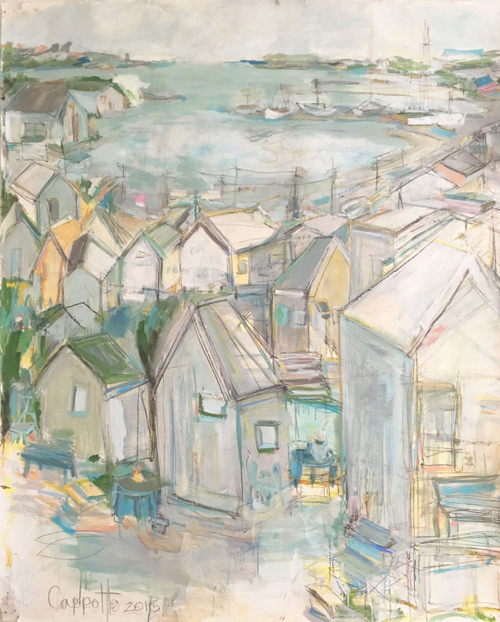 Cappotto’s work is in various museums and collections, and she has received multiple awards for her mixed media constructions. One of her collage pieces was awarded joint first prize in the 2010 International Picture Works Competition. The prize also included a national poster/postcard blitz worth over 25,000 euros. She has also been included in the Land and Sea Contemporary Artists, by Deborah Forman published Spring 2013. Cappotto exhibits regularly in Provincetown, Palm Beach, and Charlotte, NC. In 2015, she completed a six-week residency at the Vermont Studio Center. Cappotto’s paintings particularly came on the radar after winning the Lillian Orlowsky and William Freed Grant for painting, and having two successful Museum shows.