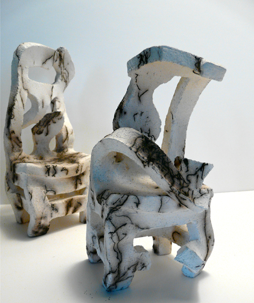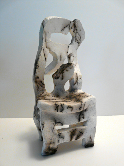 “They are serious, his chairs, their plain shapes insisting on a straight back and level gaze, feet flat as a field or a board. The finish is two thousand degrees hard and so smooth it is nearly impossible to sit without sliding like a fool to the floor. But look again: the artist has endowed his chairs with mercy, slumping their backs humbly so that they appear not fixed but flexible in their devotion. Some of them are intertwined, like a piggy bank whose treasure is unattainable without being broken, which, paradoxically, some already are; broken and perfect as in the lack of nothing essential to the whole. Chairs are meant to hold, to elevate, to save us from the difficulty of having to get ourselves up off the ground. But mid-epidemic, Pasquale’s chairs began melting, the safety they inferred no longer anything any of us could count on. Is it a coincidence that they are ceramic? Because no matter how deformed they grew, surely he understood that, once fired, they would remain intact for thousands of years, that some essential gesture of his would outlive illness or sorrow. In this sense, context is everything, no? For who, digging with a spade in the garden one day far into the future, would unearth such objects and not be delighted by the fact of them glinting in the morning sun?" – Melanie Braverman, Provincetown Arts Magazine"