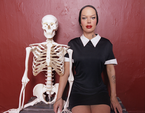 Shania LeClaire Riviere was born and raised in the South. He left home in his twenties to travel the world and work on a cruise ship. Ultimately, he landed in New York City where he settled for ten years and began exploring his creative process by donning drag. He was inspired by such creative forces as The Cockettes and performance artist Leigh Bowery. From New York City he migrated to Provincetown, and it was here that he made a commitment to bring his unique style of drag into the Fine Art world.