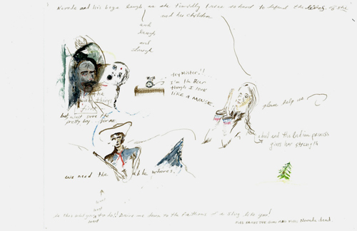 “All of my drawings are rooted in the idea of the storyboard, expanding this form so that individual works can stand alone, but cumulatively serve to build narratives, locations, and character studies. They are working drawings functioning as a script.