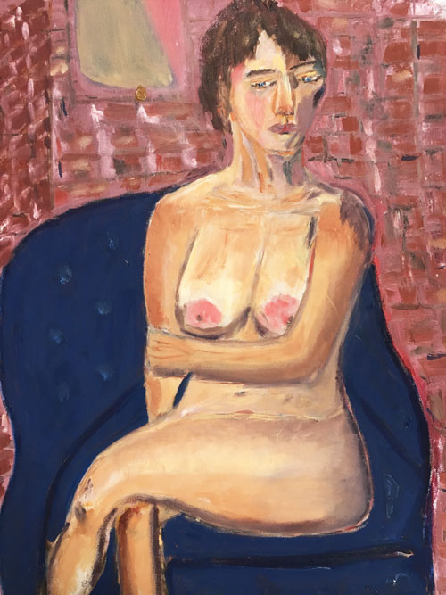 In 2015, I began a group of portraits of models in class, family members and people I had seen in the New York Times. Now, looking at them, I see unconsciously I have created in each portrait something of the enigmatic I find in treatment. The faces are bold, but in each person, unbeknownst to me, often one eye is glancing forward in focus and the other glancing just slightly to the side, suggesting both the enigmatic in me, and the subjects’ struggle to translate something of the enigmatic lodged inside of them. Bold faces do not give rise to vivid clear portraits but hold the tension of something unconscious, unknowable, seeking translation but never translatable.”