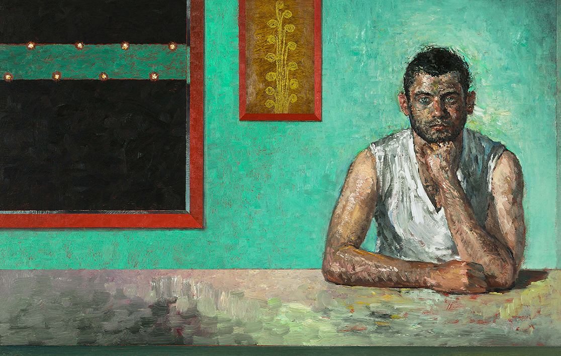 The paintings depict individual men, but they aren't portraits. The men inhabit a particular place, but it isn't real. It's an ambiguous, interior territory, where things are and are not what they seem. The paintings are like stages upon which dramas play out--theatrical moments--and the men who inhabit them are the actors. The reality lies in the emotional core of this world, intensely felt but highly contained. My model Lorenzo called it "emotional purgatory." Perhaps these are worlds of their own making—worlds with edges and outsides and unknown terrains beyond, just out of reach. For me the paintings are often as much about what isn't seen as what is.