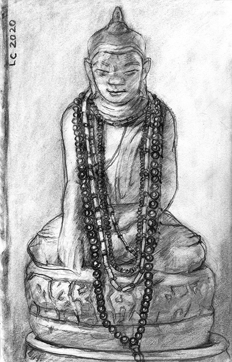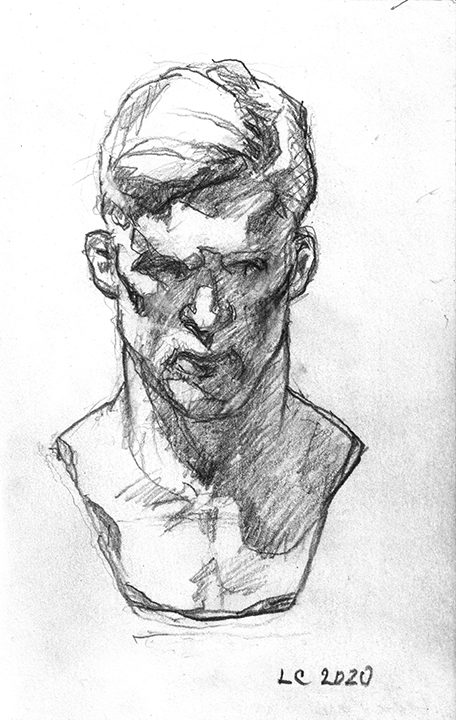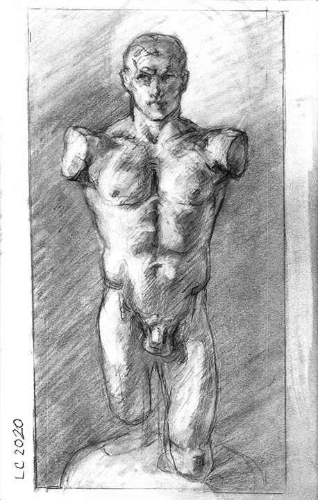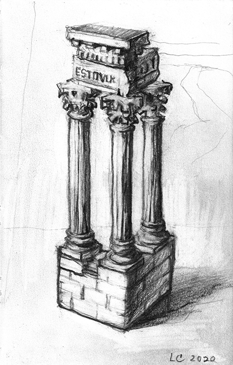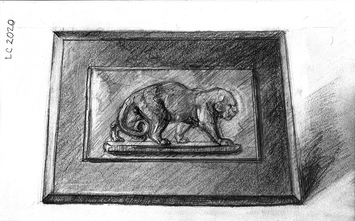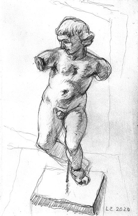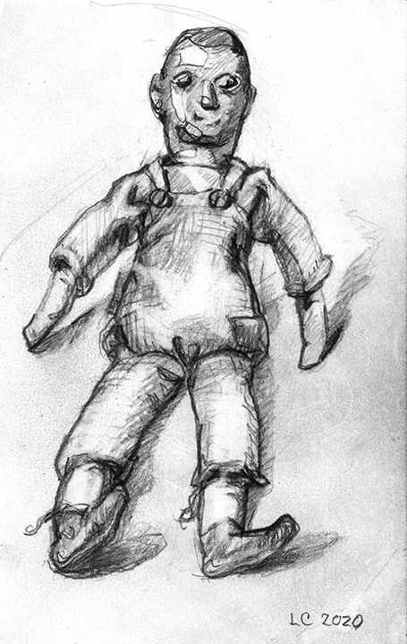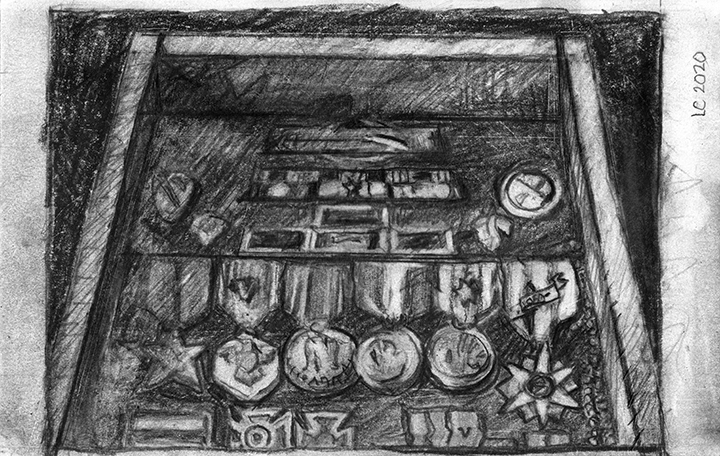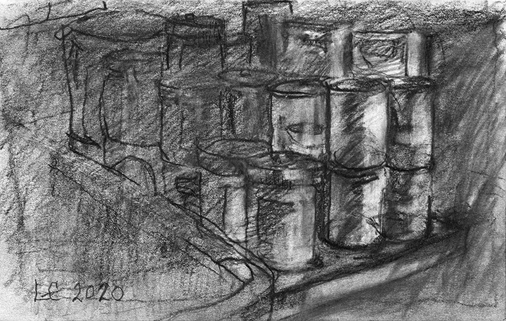 He [Larry Collins] didn’t decide in advance which of his possessions he was going to draw; there were no hierarchies in terms of utilitarian objects versus some of the fine art or antiques he’s collected over the years. Nothing was chosen for its symbolic or sentimental associations. Why spend days drawing the glass of water, but not the toothbrush? Why draw the Christmas cactus, but not the fin de siècle Egyptian Revival stained glass lamp? He drew each thing as if he was seeing it for the first time; in isolation, all he saw was form, volume, light and shadow. He wouldn’t pick the next object until the previous drawing was completed. Then he would scan the room, waiting for the next thing to “jump out at me.”